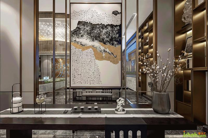 在本案中,室內設計師通過山、水、木、金等自然元素的運用,將展廳打造成藝術館式的空間體驗,弱化了展廳的功能性,使其更具人文氣質。以木色統(tǒng)籌空間,運用淺色玉石凸顯輕盈氣質和空間品質,用現(xiàn)代的設計手法搭配中式元素和細節(jié),比簡約多一點溫度,比奢華多一絲靜謐。