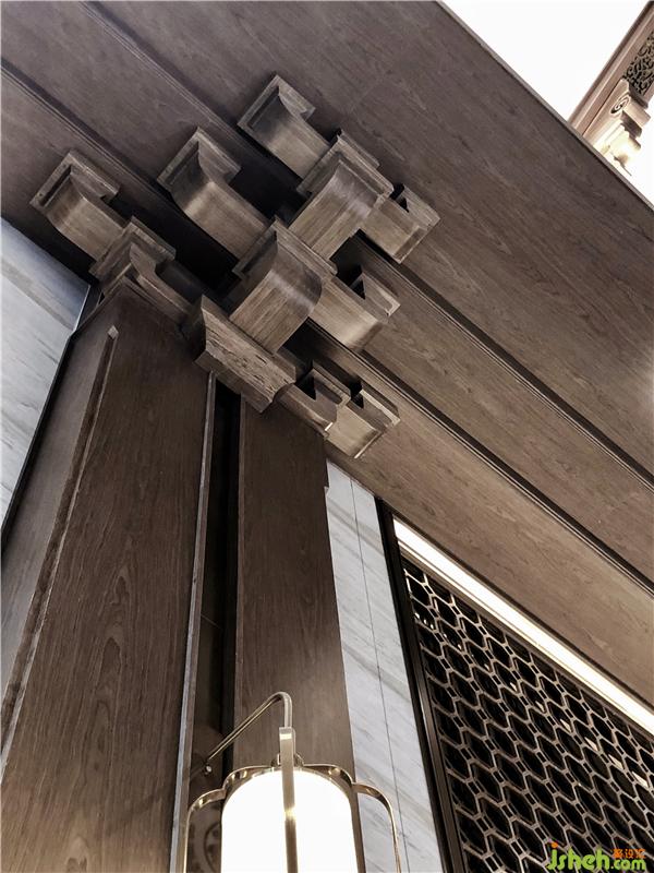 “山”為風(fēng)骨,“云”為志向。接待臺區(qū)背襯巨幅漆畫木雕花,將山、云元素精鏤細(xì)刻,融為一體。駐足觀瞻之際,仿佛身已在深山中,山中有云,云中有山,空間的禪意被自然地渲染而出。兩側(cè)對稱置暖色燈帶,帶來一絲安靜與溫潤氣質(zhì)。接待臺輔以水晶玻璃磚飾之,與古銅色不銹鋼形意合一,都市文化與傳統(tǒng)氣息于此交融。裝修設(shè)計(jì)