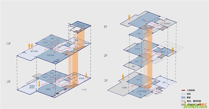 根據(jù)居住需求,設(shè)計師劃分出了合理的功能分區(qū),別墅特有的垂直結(jié)構(gòu)讓每一層空間各自獨立、動靜相宜。