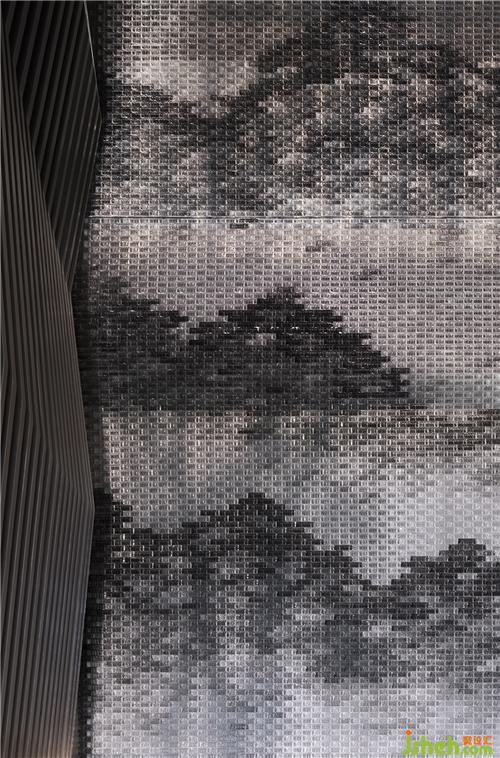 通高的金屬造型與山水玻璃磚的交融契合,在有序的疊加中形成連綿不絕、氣勢磅礴的山海,又猶如風(fēng)起時涌動的層層波浪,柔和了空間的硬朗,煥發(fā)著浪漫與詩意的生活,置身于其中,沉浸山海懷抱享受自然愜意。