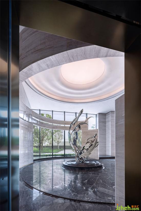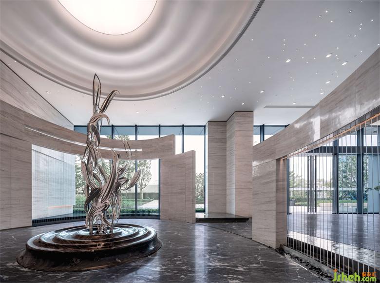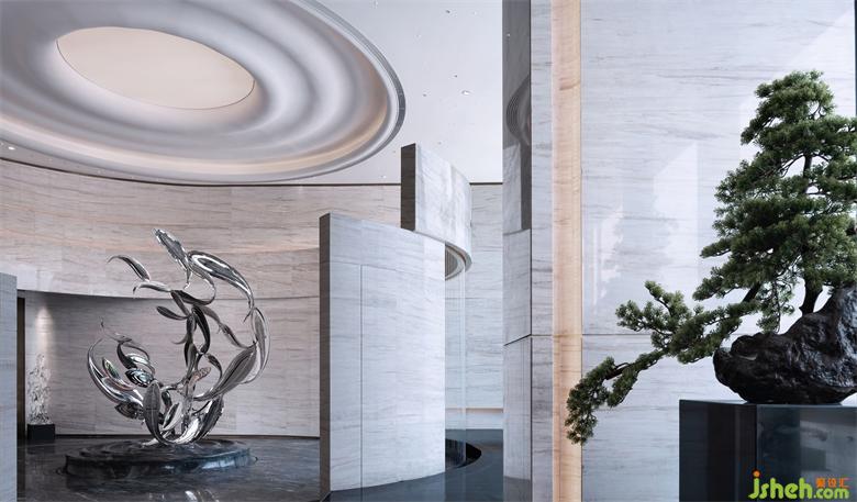 流動(dòng)型墻面塑造的“龍門”延伸環(huán)繞形成無界之合,深圳營銷中心設(shè)計(jì)與水幕的結(jié)合讓空間增加了神秘與靈透的色彩,虛與實(shí)結(jié)合、動(dòng)與靜相生生發(fā)有趣、自由的聯(lián)想,讓這藝術(shù)一隅成為空間游歷的開始,同時(shí)賦予空間勃勃生機(jī)。