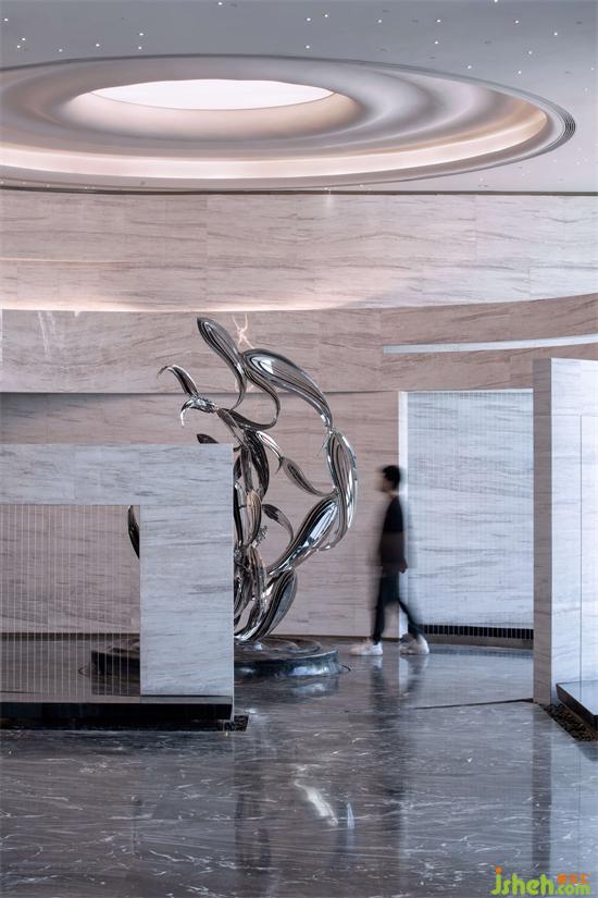深圳營銷中心設(shè)計(jì)天花以流動(dòng)的“星系”塑造空間意境,夜深天微明,燈光亮起,大船上空,星辰爍爍不知凡幾。星空盡頭,如日月更替,星云旋轉(zhuǎn),神秘而璀璨的銀河若隱若現(xiàn)。