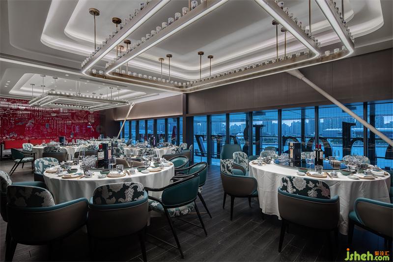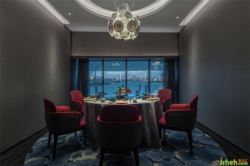 悅江餐廳的另一設(shè)計(jì)特點(diǎn),是餐廳的燈光與照明設(shè)計(jì),燈光的設(shè)計(jì)需在客人的用餐體驗(yàn)和藝術(shù)展示體驗(yàn)中找到較為恰當(dāng)?shù)钠胶獾模瑹艄獠粌H能有效規(guī)劃營(yíng)造出空間的商業(yè)場(chǎng)景氛圍需求,同時(shí)也能帶給客人高品質(zhì)的藝術(shù)觀賞體驗(yàn)。燈光的設(shè)計(jì)在此起到了至關(guān)重要的作用。