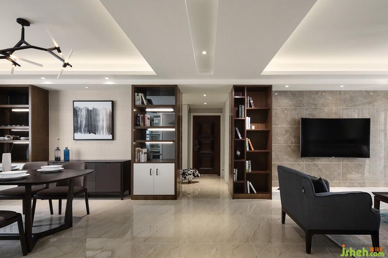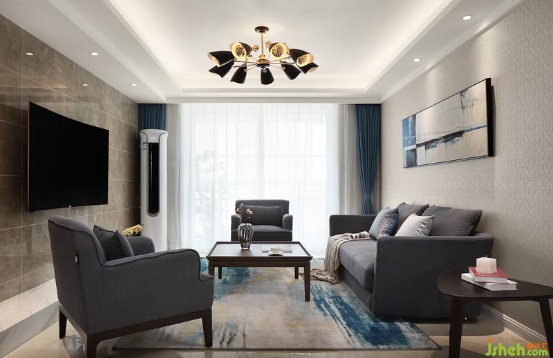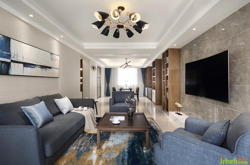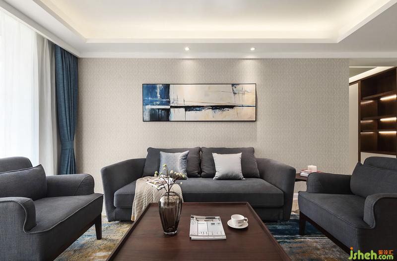 客廳室內(nèi)設(shè)計(jì)師整體以咖色作基礎(chǔ)色,用藍(lán)色提亮空間,沉穩(wěn)又不失生動(dòng),這正是而立之年所追求的內(nèi)外品格。