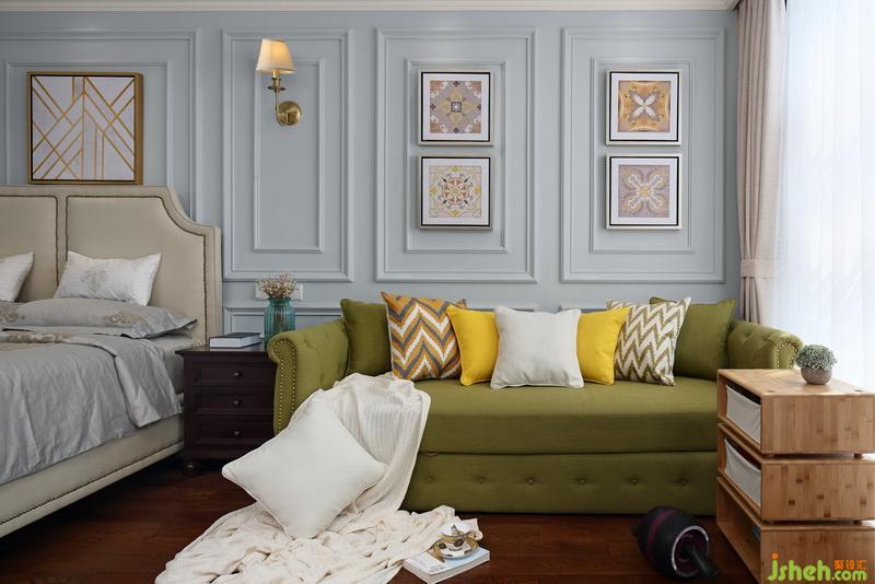 飾品,床飾的選配也是設計公司經(jīng)過細心挑選的,和墻體的顏色協(xié)調(diào),呼應。