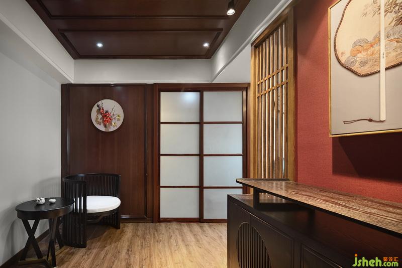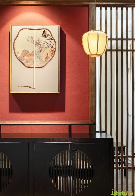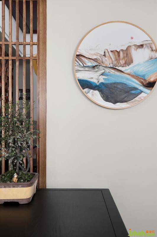 木質(zhì)隔斷備受歡迎,讓來訪者賞心悅目。搭配一副抽象掛畫,和木質(zhì)隔斷相互統(tǒng)一。一盞簡約中式小吊燈,簡約大方。