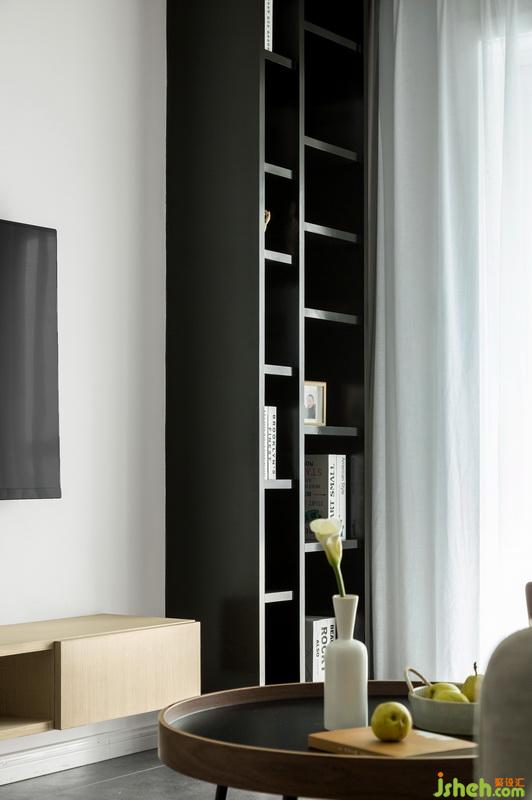 電視柜和裝飾柜為壹石現(xiàn)場制作,除增加收納功能以外,黑色裝飾柜也給簡潔的空間多了一份硬朗。在設(shè)計(jì)上的色調(diào)搭配,過多的深色會讓人產(chǎn)生壓抑,而如果沒有深色相稱也就反襯不出質(zhì)感,正是顏色有深淺、明暗有變化。