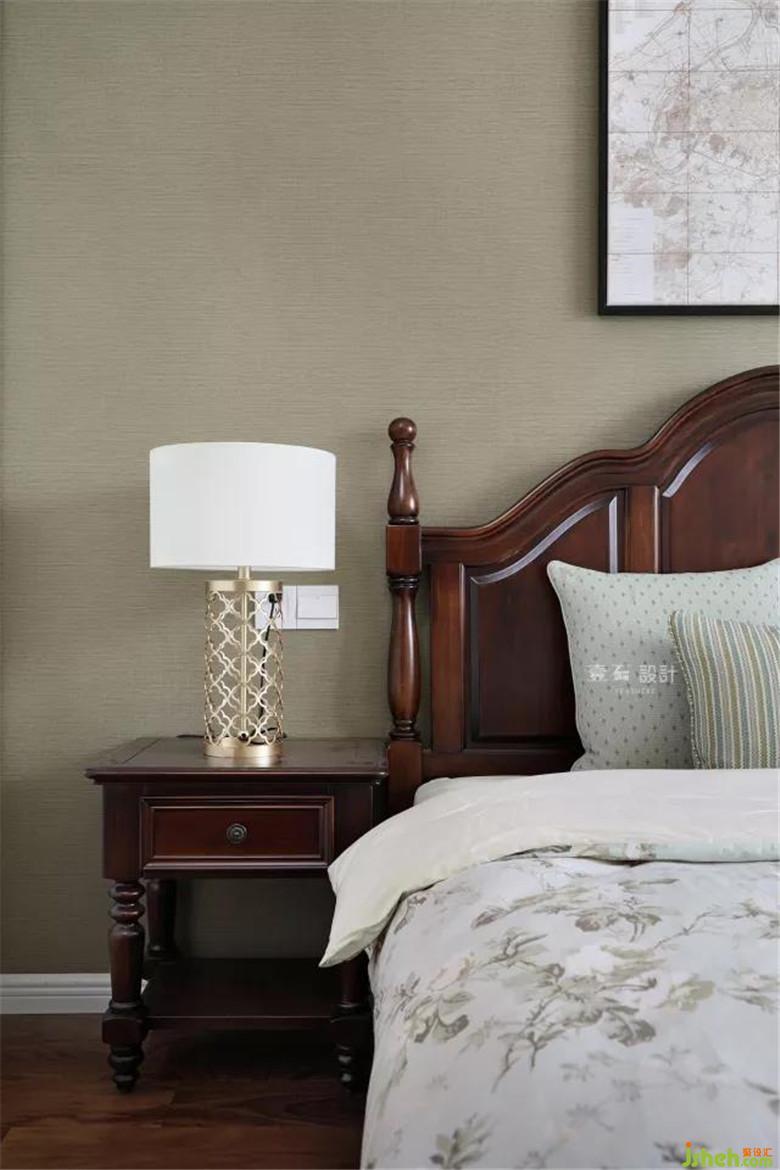 裝修公司淡淡的背景襯托床和床頭柜光澤度更為飽滿,點(diǎn)綴精致臺(tái)燈和掛畫,一處一景,美哉。