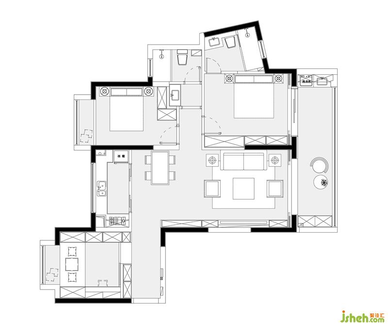 原始結(jié)構(gòu):三室戶型,大陽臺,彩光通透,局部格局還有優(yōu)化提升的空間。
