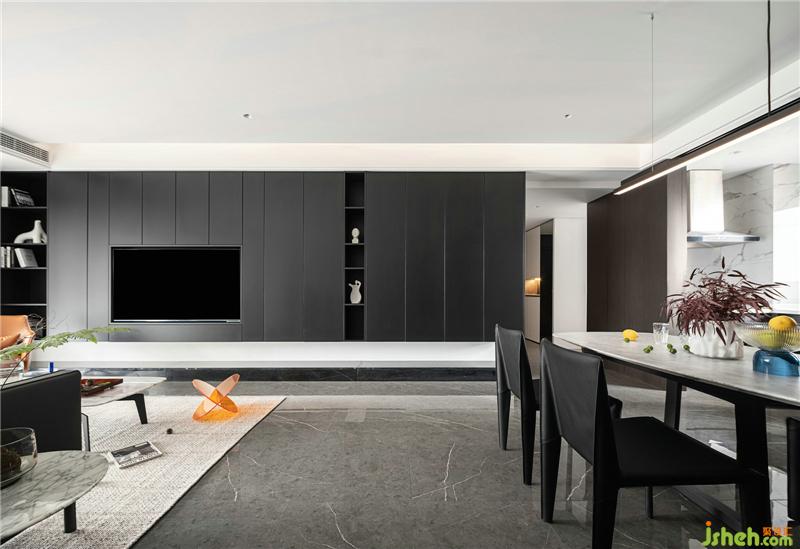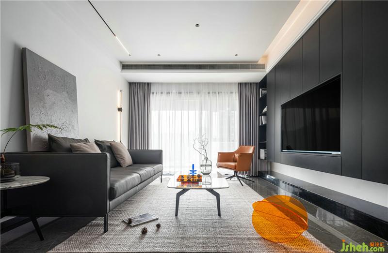 黑色是一種時(shí)尚,用于電視背景墻,實(shí)現(xiàn)了顏值和功能的并存,用橙色點(diǎn)綴,釋放高級優(yōu)雅的氣場。