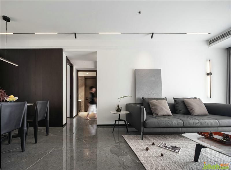 用色以黑、白、灰為主,局部的藍(lán)、橙點(diǎn)綴,讓簡約空間時(shí)尚格調(diào),又有溫度。合理布局,精準(zhǔn)配色,實(shí)現(xiàn)功能顏值兼得,實(shí)現(xiàn)了女主想要的收納無憂,純粹凈美的理想生活空間。裝修設(shè)計(jì)
