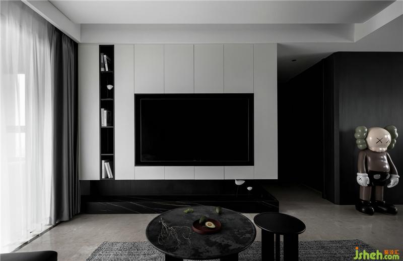 設(shè)計(jì)將原有玄關(guān)和客廳電視背景連為一體,進(jìn)一步擴(kuò)大延伸了視覺(jué)空間,并且增加了客廳的儲(chǔ)物空間,滿足了功能需求。