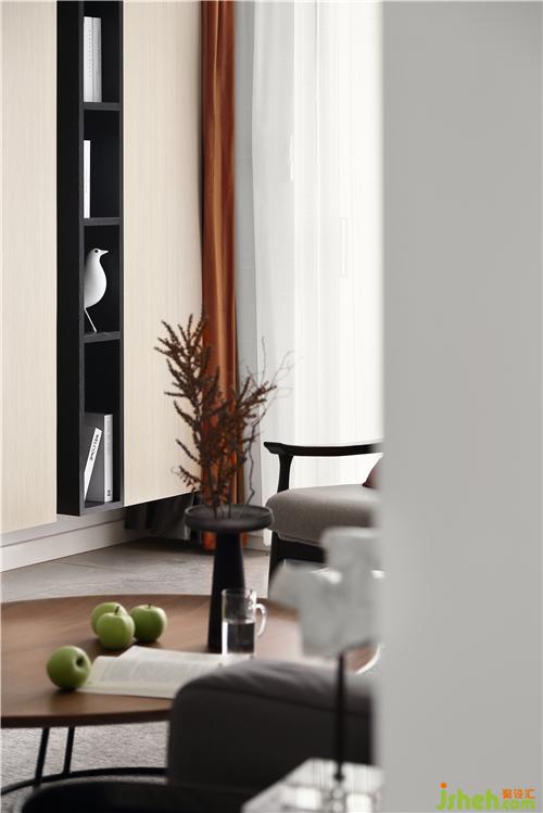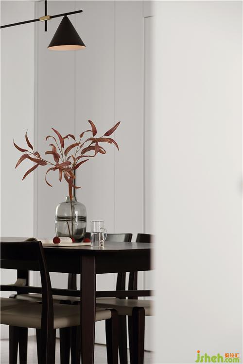 原來戶型書房開門在餐廳一邊,經(jīng)南京室內(nèi)設計師設計我們納入了儲物柜,并和書房門拉平做隱形處理,餐廳不但增加了儲藏功能,視覺上也讓餐廳更整體。