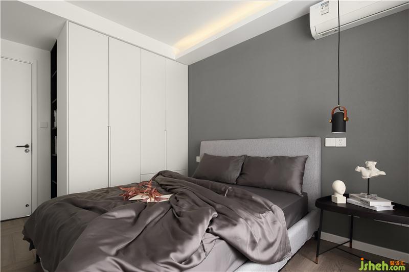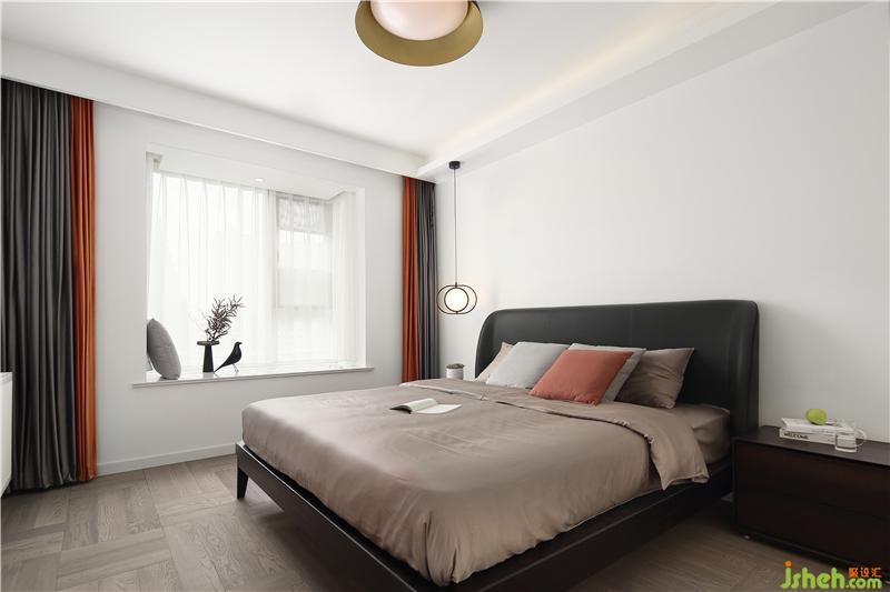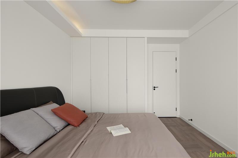 臥室同樣素色為底, 亮色點綴。