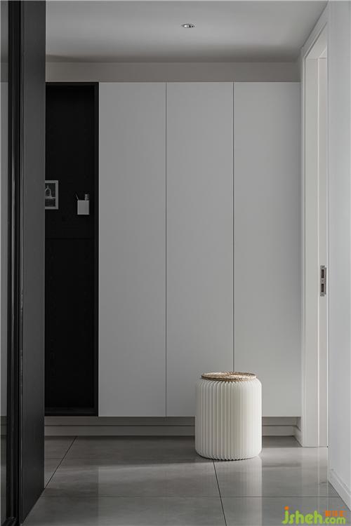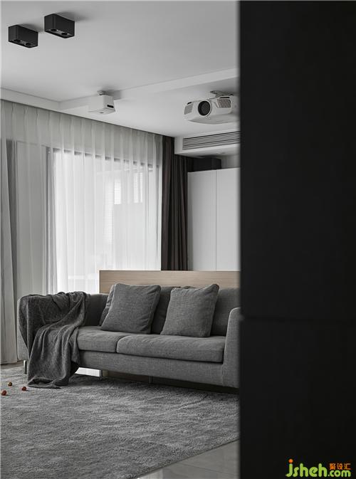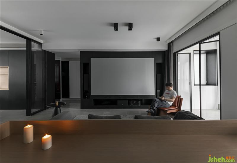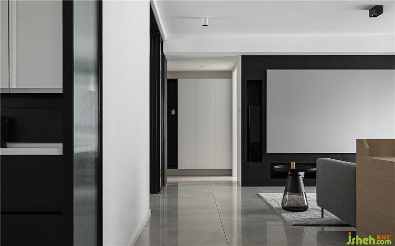 The wall of the living room and the secondary wall of the back are made into the double-sided cabinet design of the back after modification. The secondary storage wardrobe is added, and the cabinet TV background is embedded with projection and audio display.