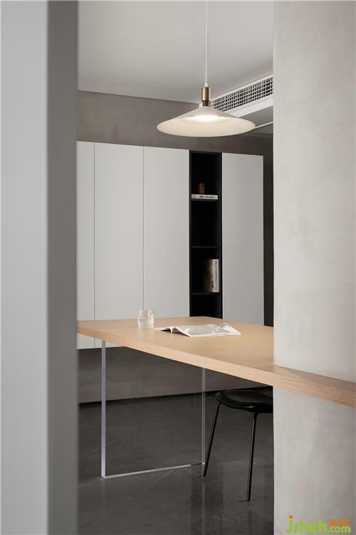 引入建筑設(shè)計(jì)手法,將餐桌與墻體穿插組合,極簡(jiǎn)美觀南京裝修設(shè)計(jì)。