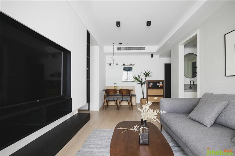 The space is quiet, gray freehand and simple. The storage TV background wall is ready for the future life.