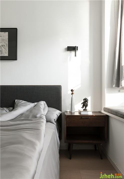 空間靜謐,灰白寫(xiě)意,空間簡(jiǎn)潔。收納式電視背景墻,為今后的生活收納做好了準(zhǔn)備。