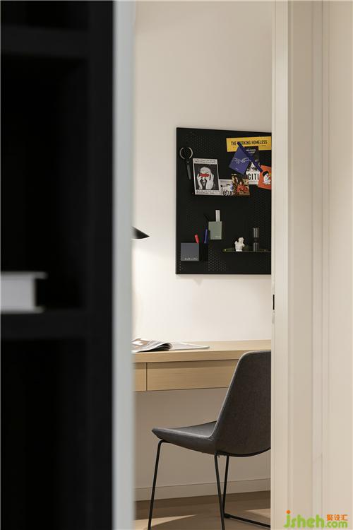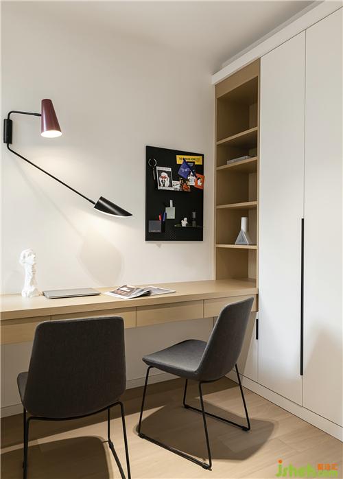 書(shū)房的懸掛式書(shū)桌,與柜體自然銜接,形成一體南京裝修設(shè)計(jì)。