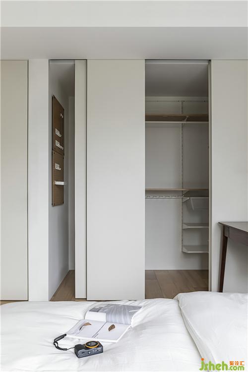 想要一個衣帽間。采用金屬置物架的方式 ,可自由調(diào)節(jié)衣物規(guī)劃區(qū), 配合吊軌移門的形式,打造一個精致的步入式衣帽間。