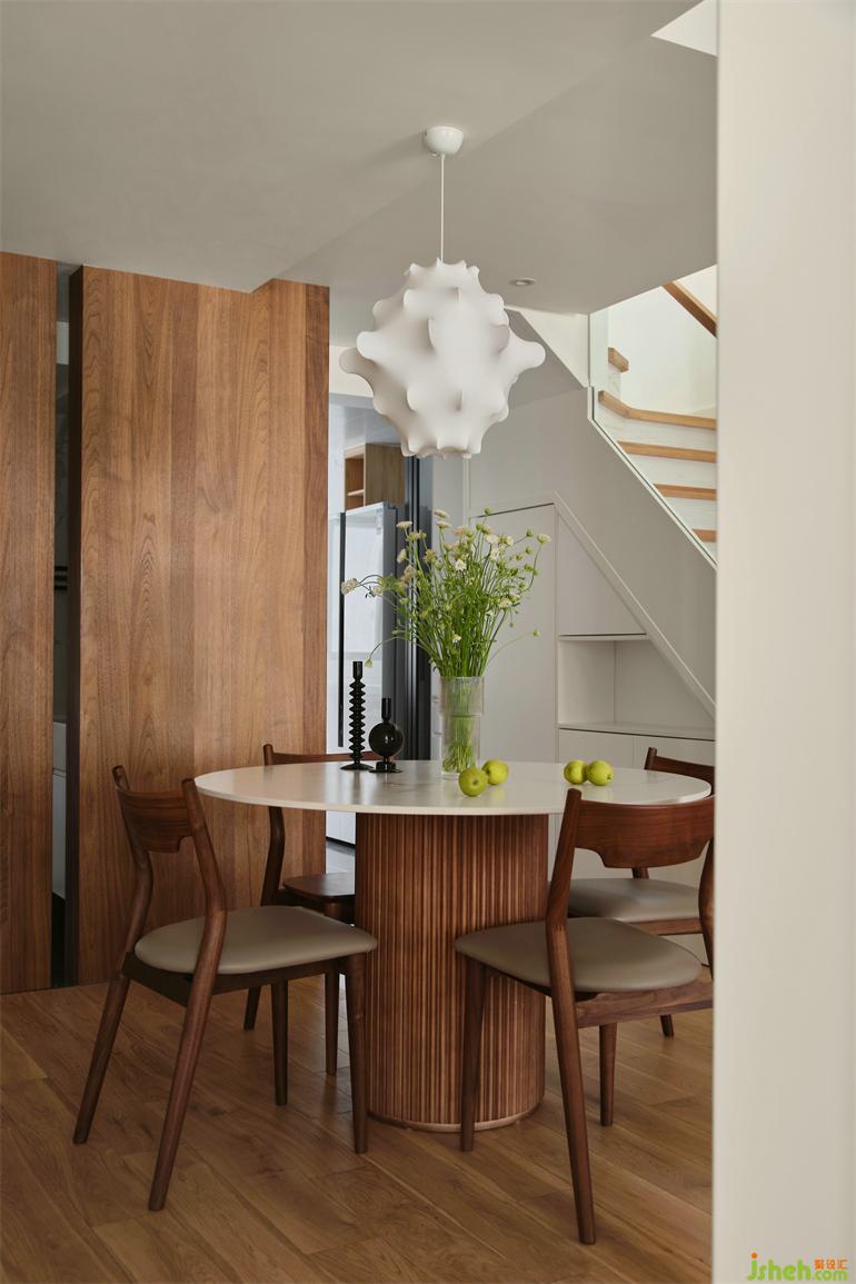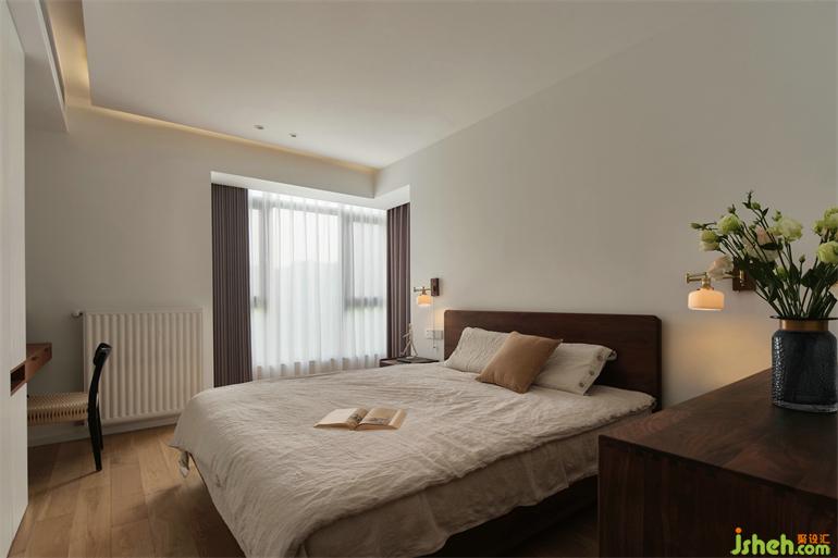 臥室以質(zhì)從簡,樸素的木質(zhì)床,復(fù)式裝修設(shè)計搭配棉麻質(zhì)感的床品,兩盞床頭燈營造寧靜的閑適。