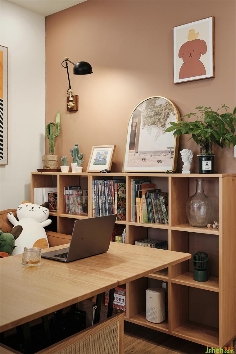 把喜歡的小物都帶回家,靠墻擺放了一組可自由組合落地架,裝修公司可存書,也可擺放綠植鮮花和裝飾畫。