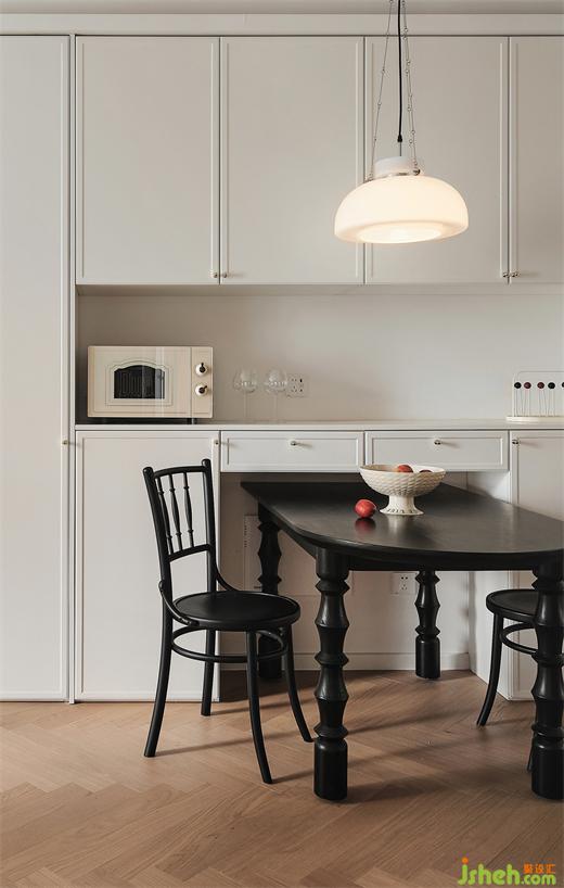 餐廳采用柜體收納式,餐桌嵌入式,增加收納又可以滿足三五好友來(lái)聚餐,秒變大長(zhǎng)桌的實(shí)用性。
