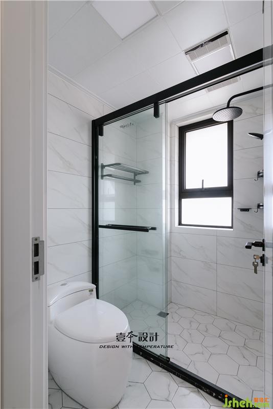 ▲簡潔的墻地磚,搭配黑色框的淋浴房,通透明亮的空間可以褪去工作歸來一身的疲倦。