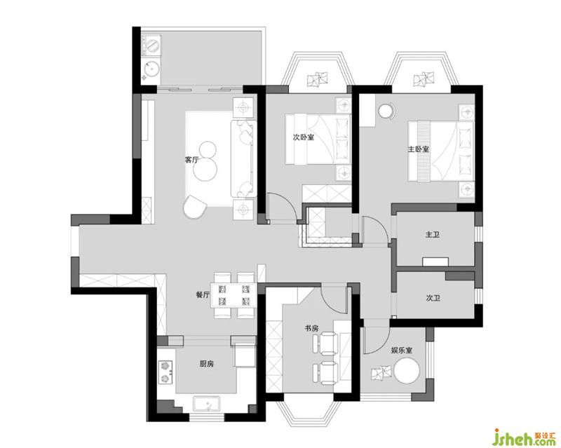 2:去掉過道墻體,弱化陽角沖擊入戶門