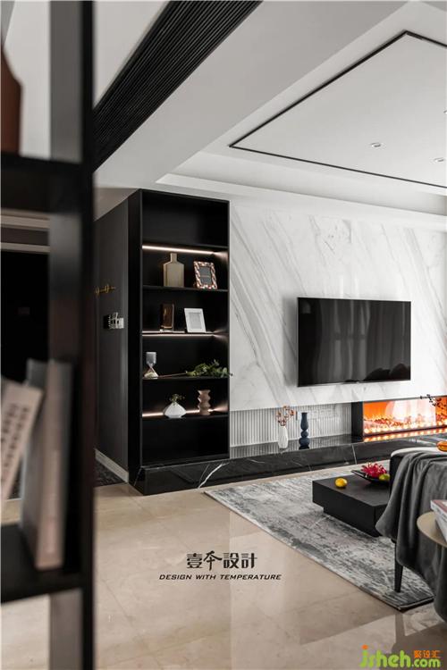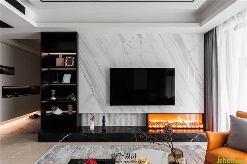 3:將電視背景墻做成大理石,擴大客廳空間感