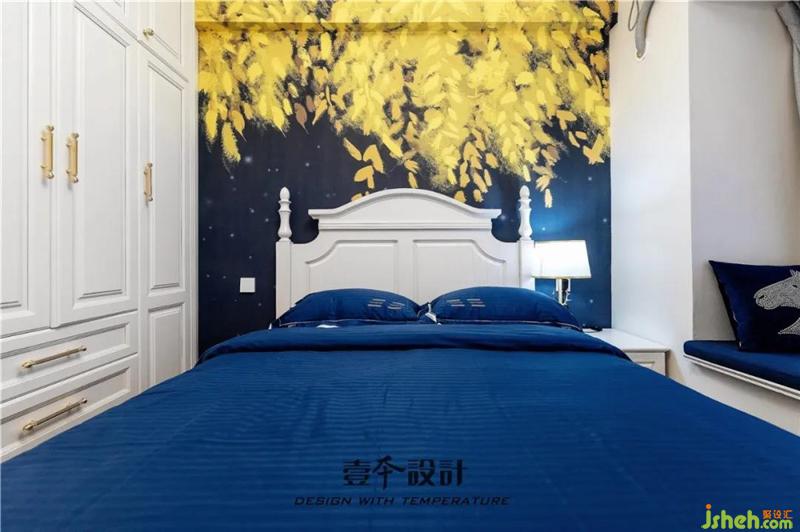 深藍(lán)色的沉穩(wěn)大氣,有著令人安心的力量。金色落葉點(diǎn)綴著神秘的深藍(lán)星空,讓空間生動起來。