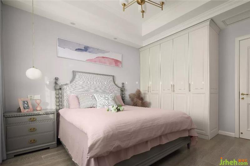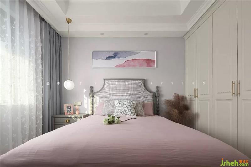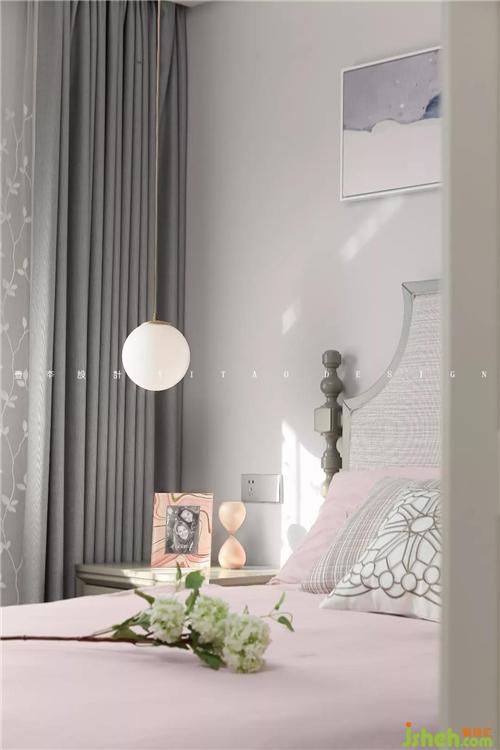 次臥是大女兒房,在灰色的主調里加入了灰粉色,低調文靜的少女風撲面而來。室內設計師