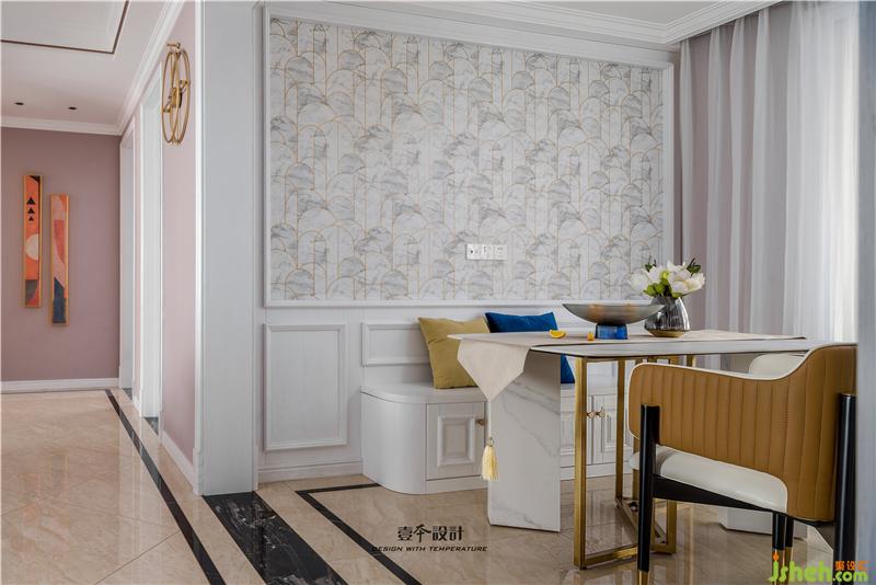 卡座餐廳時(shí)尚又實(shí)用,卡座下面可以做儲(chǔ)藏柜,上面放上抱枕,溫馨感瞬間提升。輕奢精致的餐桌椅,室內(nèi)設(shè)計(jì)師在金屬、石材與皮藝質(zhì)感的結(jié)合搭配下,呈現(xiàn)出有儀式感的用餐氛圍。
