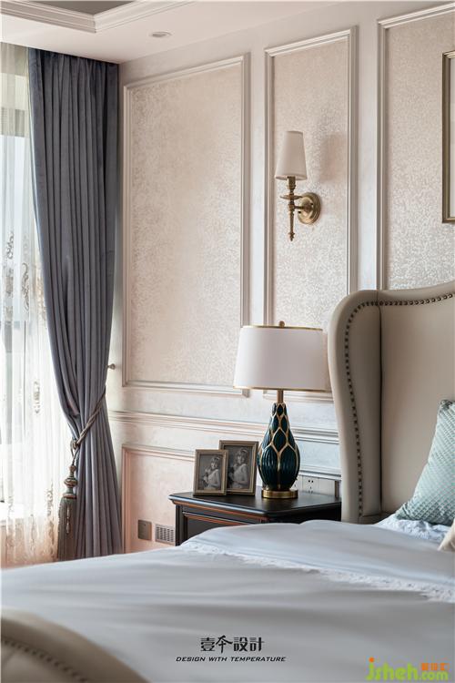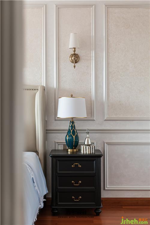 主臥延續(xù)客廳精致優(yōu)雅的風(fēng)格,搭配黑色的床頭柜,擺設(shè)皮質(zhì)靠背的美式床,素簡(jiǎn)的床品與床頭掛畫,為臥室空間增加溫情和舒適。閑暇之余靠坐在飄窗,一本書,一杯咖啡,陽(yáng)光溫暖,愜意整個(gè)下午。