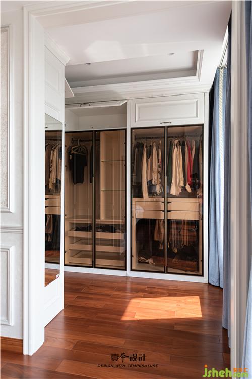 衣帽間采用了開(kāi)放式設(shè)計(jì),顯得空間更大,衣物取放一目了然。