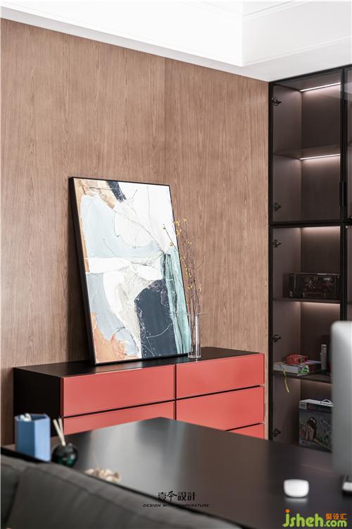 客廳沙發(fā)背后打造成為休閑的書(shū)房區(qū)域,室內(nèi)設(shè)計(jì)師用沙發(fā)與書(shū)桌將區(qū)域分隔,在這里看看書(shū)沐浴陽(yáng)光,好不愜意。現(xiàn)在落地畫擺放的位置是將來(lái)為孩子們預(yù)留放鋼琴的地方。