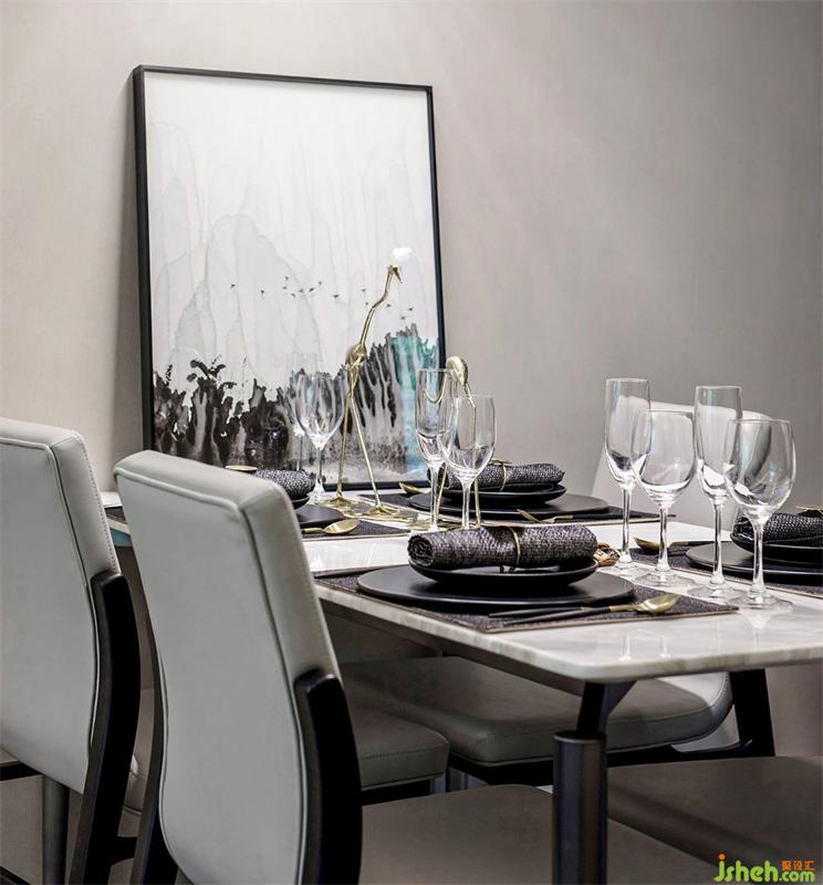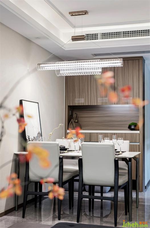 空間布局決定著功能性與舒適性的平衡,通過材質(zhì)劃分功能屬性的差異,配以空間高度的微妙變化,使得客廳與餐廳空間融會貫通的同時(shí),又互相獨(dú)立開來。