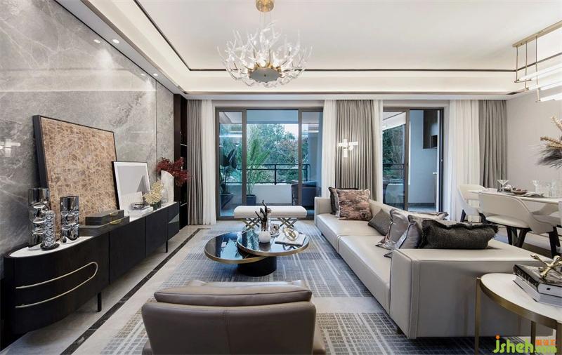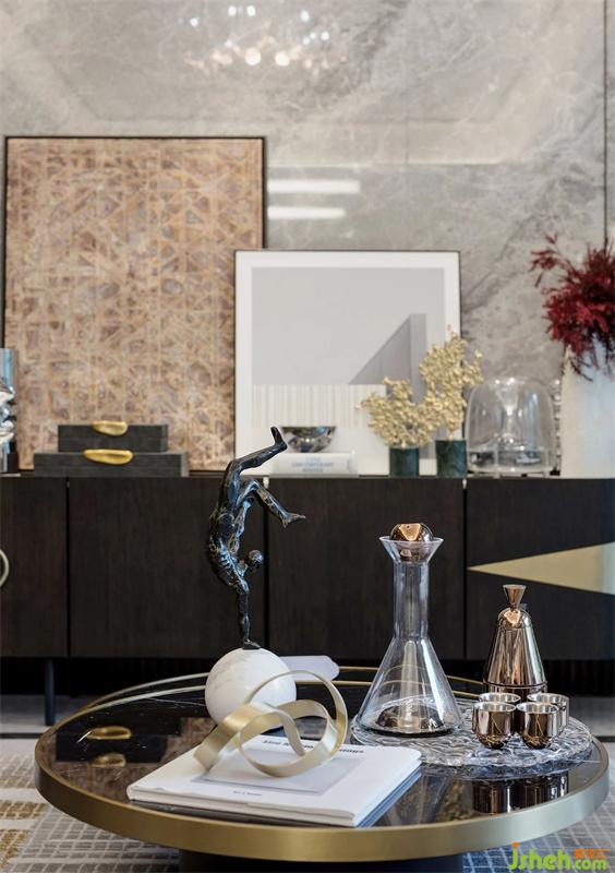 武漢樣板房設(shè)計造型與細(xì)節(jié)低調(diào)地詮釋出對生活的熱愛。線面結(jié)合的天花有妙不可言的靈動感,自然肌理的大理石墻面;精致的黃銅烤漆茶幾、紋理豐富的地毯、紳士品格的皮革沙發(fā)與空間相互呼應(yīng),增添生活儀式感。