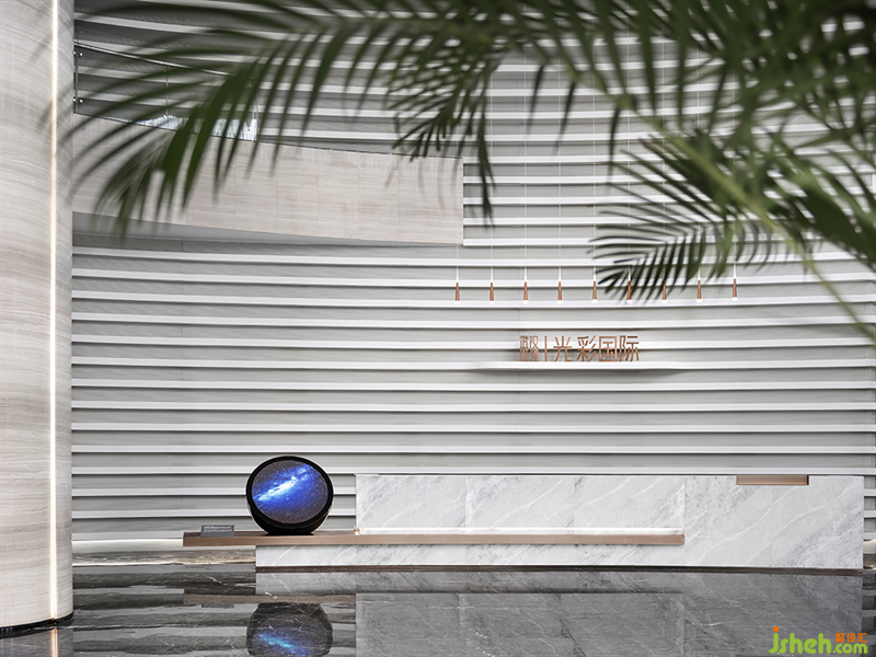 不斷重復(fù)的墻面曲線,疊加起巨大靜態(tài)勢(shì)能,完美烘托項(xiàng)目品牌,低調(diào)卻內(nèi)涵力量感。藍(lán)色的LED裝置,如一只望向宇宙蒼穹的眼睛,將深邃星辰大海納入胸中,引起一段宇宙級(jí)浪漫。水韻星光下,在城市絢爛外的燈火闌珊中,靜聽(tīng)江水濤濤,奔涌千年。