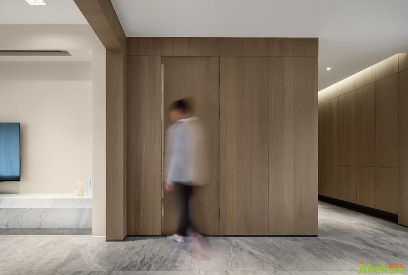 整體空間室內(nèi)設(shè)計師采用白色墻面線條處理及原木飾面