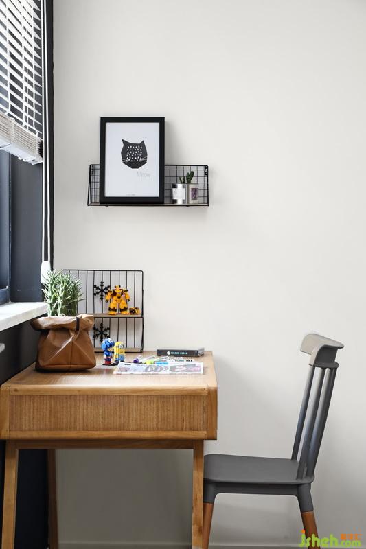 推開門就知道這是個(gè)男孩子的房間,簡約藍(lán)色的小床足夠睡到十多歲,墻面的裝飾畫可以更具年齡隨時(shí)更換;靠窗學(xué)習(xí)的小桌子光線充足,白色的百葉窗既可以裝飾又可以很好的遮擋光線,對了進(jìn)門的左手邊有一整面黑板墻可以讓寶貝在這個(gè)活潑的年齡跟著自己的小伙伴在自己的小天地隨手涂鴉,關(guān)門一個(gè)世界開門一個(gè)世界。