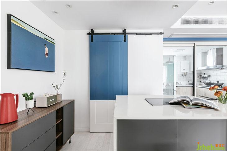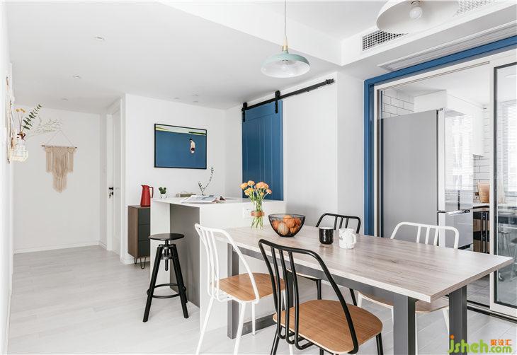 藍(lán)色穿插在餐廳空間中,挑選的裝飾畫(huà)也巧妙的運(yùn)用了藍(lán)色,