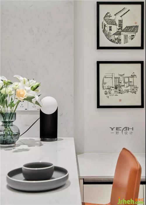 餐廳的設(shè)計上我們采用的是石材,從餐桌一直延伸到臺面高低錯落滿足大人和小朋友同時就餐。同時地面,墻面,頂面 我們?nèi)坎捎冒咨浜蠠艄庠O(shè)計提亮整個室內(nèi)設(shè)計師空間。