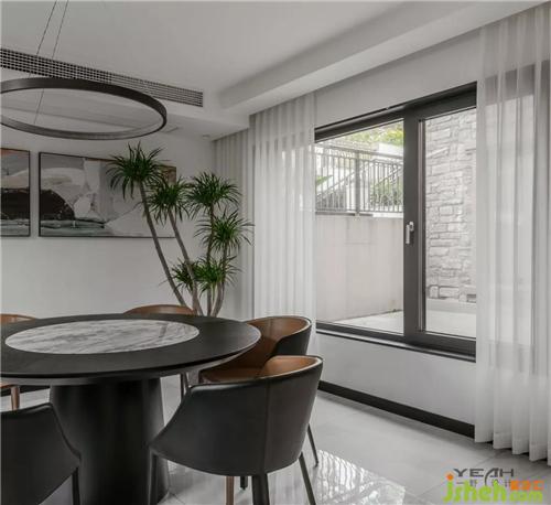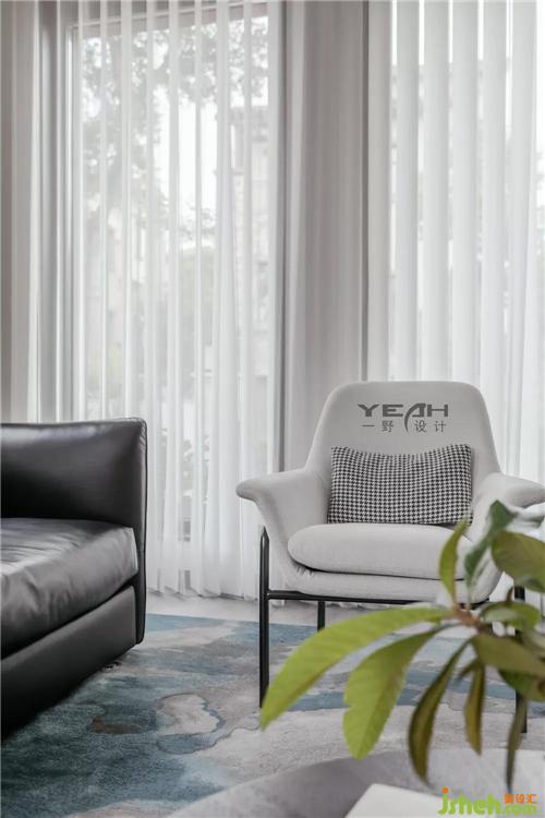 The residents in this case are a happy family of five, two elderly people, two husband and wife and one child. The living room is arranged on the first floor, and a tea room is added to satisfy the male host’s hobby of tea. After clever design, the tea room and the living room become an organic whole and at the same time an independent space, allowing the space to be fully utilized without losing the atmosphere. The clever floor-to-ceiling window design introduces natural elements into the room, and you can enjoy a comfortable home time with a cup of tea and a book.