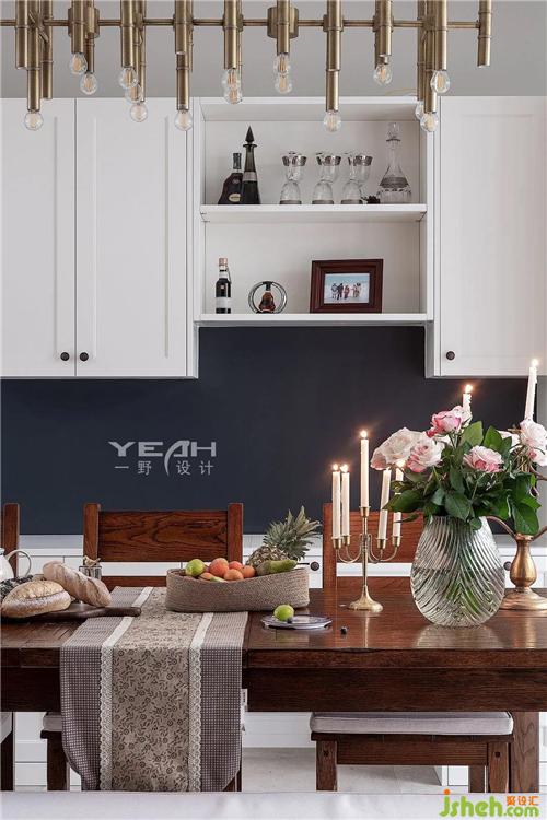浪漫,煙火氣,實(shí)用...餐廳可以有很多模式。令業(yè)主一見傾心的家具與整體色彩氣質(zhì)都極為相配,燈光亮度百般調(diào)試,恰到好處,渲染空間。