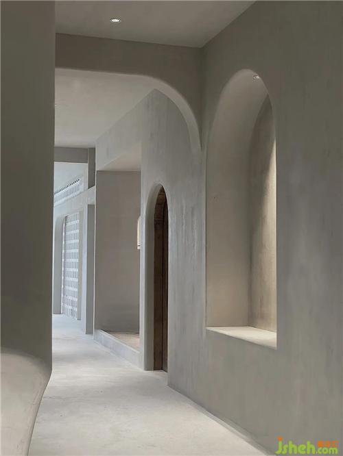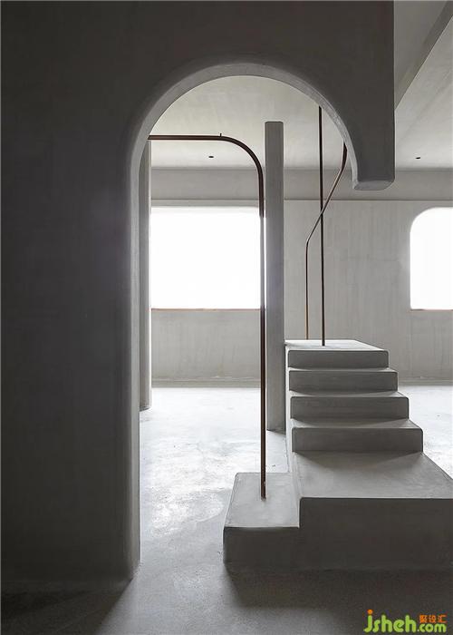 The two exhibition spaces use arrayed space bricks as semi-partitions to successfully introduce the north and south light sources into the room, and the arc-shaped lines are all cut from the surface.