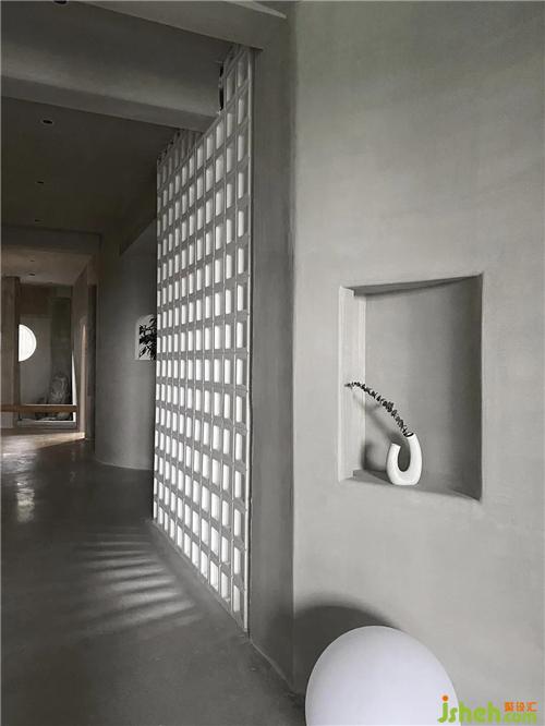兩展示空間均用陣列形式的空間磚作為半隔斷,將南北的光源成功引入室內(nèi),弧形的線都由面狀切割而成。
