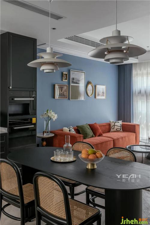 濃郁的暖色調(diào)與清爽的冷色調(diào)形成對(duì)比,強(qiáng)化了視覺(jué)效果,營(yíng)造多元化的居家氛圍。家具的質(zhì)感與色調(diào)傳達(dá)的情緒相呼應(yīng),于不同方面重復(fù)塑造空間的氣質(zhì)。