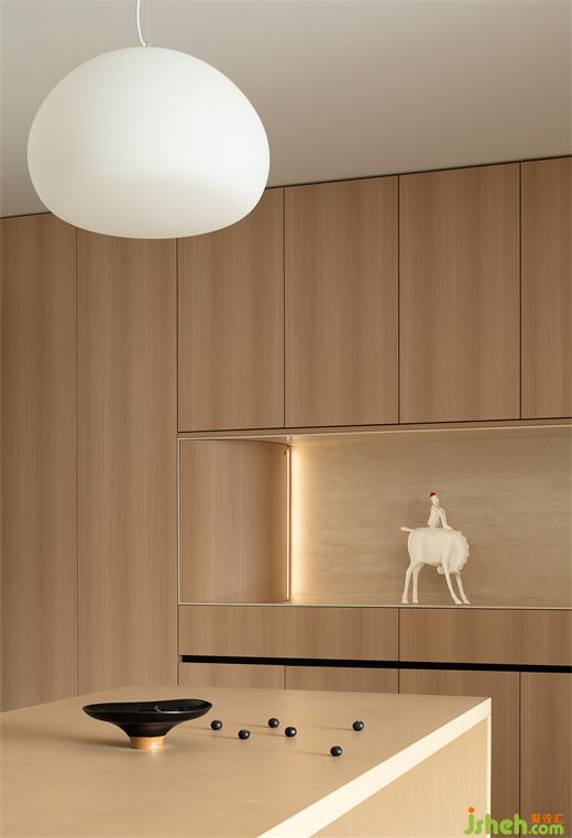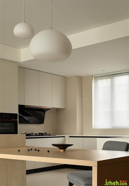 蘇州依蘭云庭家裝設(shè)計(jì)運(yùn)用原木色的中性模糊黑與白的邊界,柔和的燈光低調(diào)而優(yōu)雅地介入其中,在極簡的空間風(fēng)格里,凸顯有質(zhì)感的生活“痕跡”。浸潤在煙火氣里的廚房,有著幾分尋常人家的溫婉與熱鬧,待香氣散盡,空間再次重歸靜謐與舒緩。
