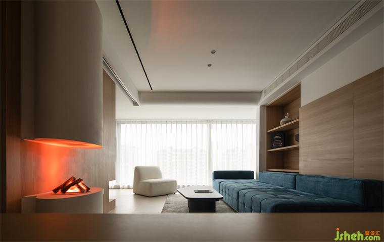 立體壁爐以弧形呈現(xiàn)在室內(nèi),懸挑結(jié)構(gòu)釋放空間個(gè)性。家具的布置不以繁縟花飾取勝,而是注重流暢簡潔的線條美,呈現(xiàn)層次錯落有致的視覺感,恰到好處地保留各自應(yīng)有的獨(dú)立性。清簡的配色、柔軟的材質(zhì),敘述著空間中漫不經(jīng)心的閑適與悠然。